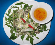 Đôi khi vì tất bật công việc ruộng vườn, không rảnh đi mò ốc thì má tôi làm món gỏi bắp chuối suông chấm nước mắm tỏi ớt... Riêng món bắp chuối luộc xé phay thì đặc biệt hơn.