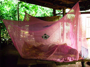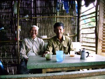 | Vợ chồng chú Thành trong góc lều ngoài rẫy. |