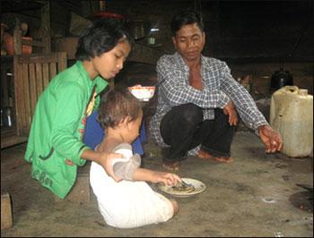 | Chồng và con cô H’Loan trong buổi cơm trưa |