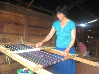 | Cô H’Loan đang giăng sợi |