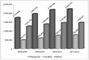 Quy mô đào tạo các trường đại học, cao đẳng giai đoạn 2009-2012. (Nguồn: Bộ GD-ĐT)