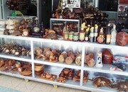 Một gian hàng bán sản phẩm lưu niệm làm từ dừa ở làng nghề Cồn Phụng.