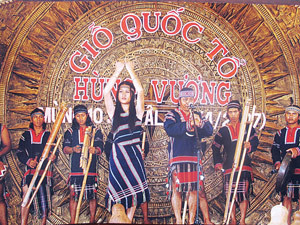 | Tiết mục của CLB Văn hóa cồng chiêng Lang Biang biểu diễn tại lễ Giỗ tổ Hùng Vương năm 2007 |