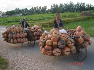 Hành trình tiêu thụ nồi đất gắn với từng bước chân của những người đàn ông. Trước đây, nồi được chất đầy trên những đôi quanh gánh. Còn bây giờ, những chiếc xe đạp cũ đã thay thế cho những đôi quang, đôi vai người đàn ông.