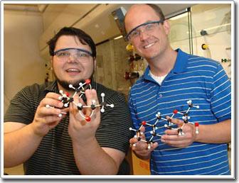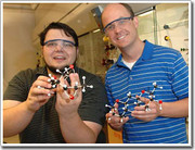 Giáo sư Tim Jamison (phải) & nghiên cứu sinh Vilotijevic - đồng tác giả công trình khám phá những tổ chức bên trong thủy triều đỏ có thể gây ra những đợt bùng phát độc tố ở tảo biển. Họ đang cầm mô hình các phân tử mà ở trong nước biển chúng sẽ biến đổi thành những thành phần điển hình của độc tố thủy triều đỏ. (Ảnh: Donna Coveney, MIT, web.mit.edu). |