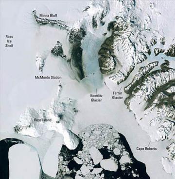 Hình ảnh có độ phân giải cao gửi về từ vệ tinh Landsat cung cấp góc nhìn rộng một số tảng băng trôi ở Nam Cực. Công nghệ mới cho phép xuyên thấu lớp băng Nam Cực đã cung cấp chứng cứ về một đợt hoạt động núi lửa dưới lớp băng của địa cực này cách đây 2.000 năm. Các nhà khoa học cho rằng sức nóng từ núi lửa đang làm tan chảy phần đế của tảng băng và góp phần làm cho một tảng băng gần đó trôi nhanh hơn. (Ảnh: LiveScience) |