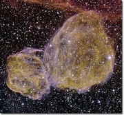 Trái lại, tinh vân lớn hơn thì ít sắt hơn là kết quả của sao băng theo kiểu II, nó hoạt động bởi sự sụp đổ của một ngôi sao cực lớn (có khối lượng gấp 7 lần so với Mặt trời) khi ngôi sao đó già khoảng vài triệu năm. Hai hệ thống nguyên bản có độ tuổi khác nhau một cách kì lạ khi chúng trở thành sao băng, có thể chúng không bắt nguồn từ một hệ thống giống nhau. Vì vậy, mặc dù cấu tạo chi tiết của nó đuợc nhìn thấy trong bức ảnh cuả GMOS cho thấy hai tinh vân trên chạm “mặt” nhau, dường như chúng rất gần nhau trên bầu trời,có lẽ vì chúng thẳng hàng trong “cái nhìn” của chúng ta.