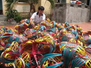 Đến với Tre Xanh một ngày nắng hạ oi ả, không khí sản xuất không mấy sôi động chủ DN phân trần: dạo này Công ty cũng chưa có nhiều hợp đồng lớn, đơn hàng thường tập trung vào cuối năm với lại dân ở đây chưa sản xuất được các mẫu hàng cầu kỳ, khó tính nên DN thường phải đến các làng nghề ở Chương Mỹ, Thạch Thất đặt hàng. Bắt đầu câu chuyện với chúng tôi, chị Bích Thuỷ chủ DN còn khá trẻ sinh năm 1974, nói về khó khăn cũng như các dự định của DN nhiều hơn là thành công. Điều đó cũng dễ hiểu vì không như nhiều chủ DN ở các làng nghề khác là con nhà “nòi” trong nghề xuất khẩu mây tre đan, chị vốn là một cô giáo cấp I, chồng lại là một cán bộ công chức nhà nước. Khi hỏi vì sao chị đến với nghề kinh doanh này, chị chỉ cười: quê đẻ mình Cấn Hữu, trước khi đi học cũng làm hàng xuất khẩu, rồi ra trường dạy hợp đồng mãi chưa có chỉ tiêu biên chế nên cũng muốn thử một cơ hội mới cho mình. Chị nói vậy nhưng tôi hiểu để Công ty Tre Xanh ra đời ở một xã mà nghề mây tre đan xuất khẩu mới chỉ được nhân cấy và nhen nhóm cách đây vài năm là điều không dễ dàng gì. Bởi những năm trước ở Nghĩa Hương chỉ đan cót giá rẻ phục vụ xây dựng, ngày công không cao nên chính quyền địa phương đã đưa hàng xuất khẩu vào nhân cấy, tăng thu nhập cho người lao động. Khổ nỗi, chỉ trong một thời gian ngắn, tay nghề chưa thể thạo ngay được nên ngày công làm hàng xuất khẩu không cao hơn so với làm các loại các mặt hàng truyền thống của người dân địa phương như bồ, cót... Vậy là, các lớp nhân cấy nghề của DN cũng như chính quyền địa phương không hiệu quả cho lắm. Bây giờ hầu hết các đơn đặt hàng của DN đều phải mang đi các nơi để đặt sau đó thu gom về xưởng đóng gói.