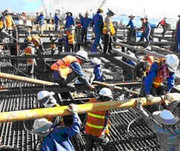 Để đảm bảo tiến độ thi công Nhà máy lọc dầu Dung Quất, trong dịp Quốc khánh 2.9 vừa qua, trên một vạn kỹ sư, công nhân của các nhà thầu vẫn làm việc ba ca trên các công trường của nhà máy.