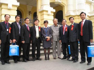 | Ông Đặng Quang Hạnh (bìa phải) chụp ảnh lưu niệm cùng các đại biểu. |