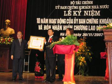 Ngày 30/11/2007, tại nhà hát lớn Hà Nội, Ủy ban chứng khoán Nhà nước (UBCKNN) đã tổ chức Lễ kỷ niệm 10 năm hoạt động và đón nhận Huân chương lao động hạng Nhất.