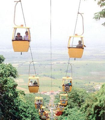 Đường lên núi Bà, bạn có thể đi bằng cáp treo hoặc máng trượt. Đây là phương tiện di chuyển giúp du khách tránh được khoảng thời gian leo núi, vừa là loại hình du lịch mà bạn có thể ngắm cảnh núi đồi bên dưới khi đang lơ lững giữa không trung. Khi ngồi trên máng trượt bạn có cái thú ngắm cảnh thiên nhiên từ một tầm cao nhất định, trên xe trượt có hệ thống tay để bạn có thể chủ động điều chỉnh tốc độ trượt với cảm giác mạnh.