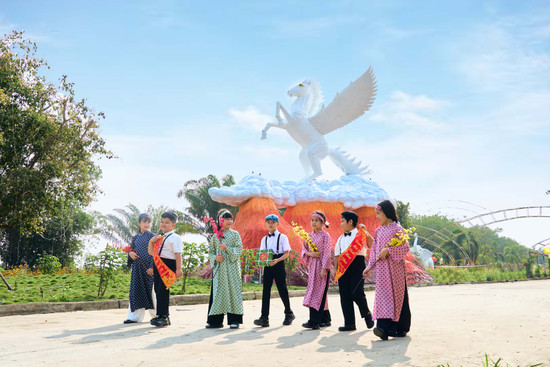Nổi bật nhất của Hội hoa Xuân Bính Ngọ chính là tượng ngựa thần, linh vật của năm. Trong văn hóa phương Đông lẫn phương Tây, ngựa trắng có cánh là biểu tượng của sự thuần khiết, trí tuệ và tốc độ, năng lực táo bạo và là biểu tượng của sự thành công, sự thăng tiến trong sự nghiệp. Hình tượng này thể hiện rõ nét khát vọng vươn mình mạnh mẽ, vượt qua mọi giới hạn của Tập đoàn Tân Tạo và dự án E.City trong năm mới 2026.